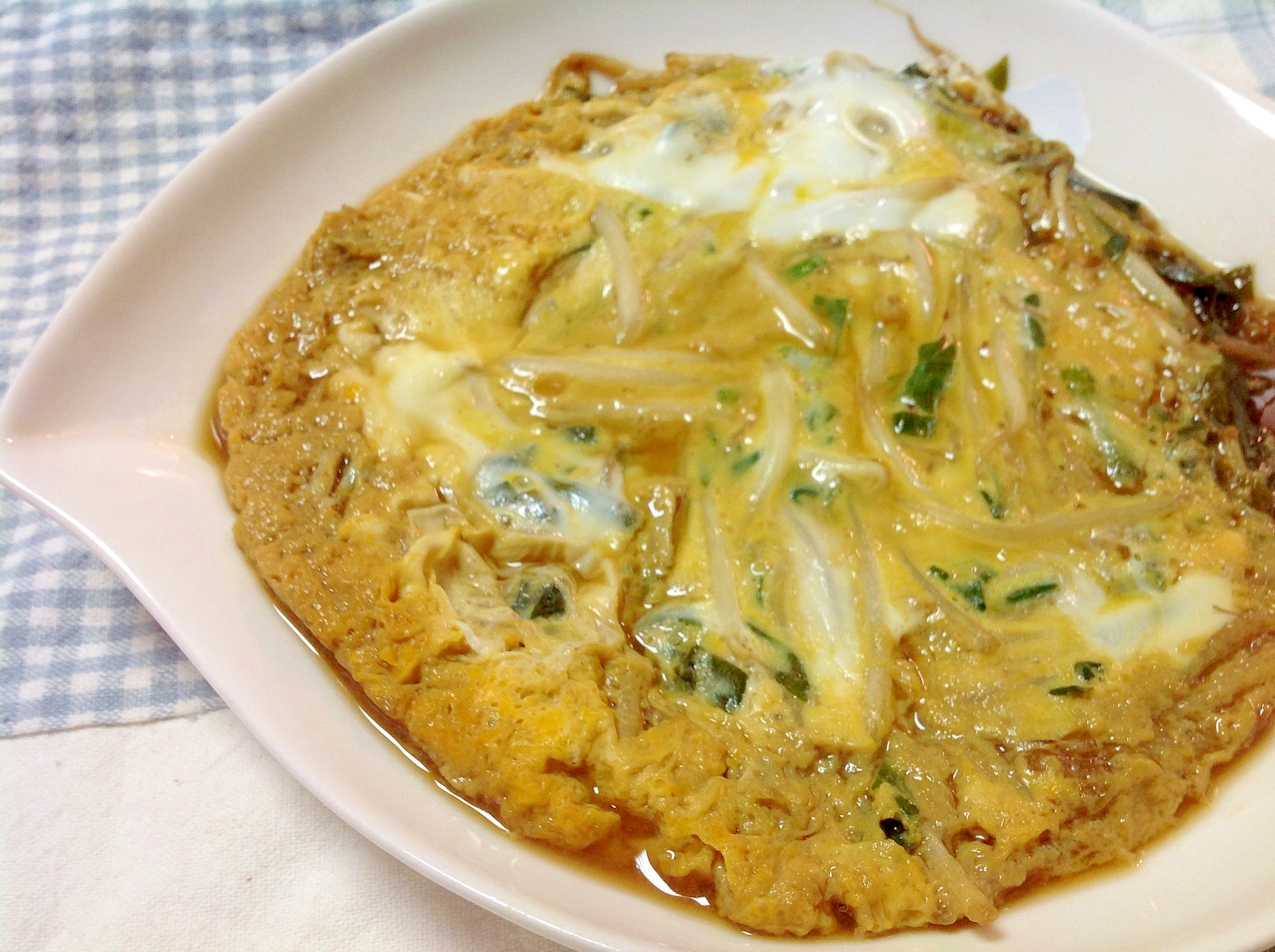 もやしのみそ風味卵とじ